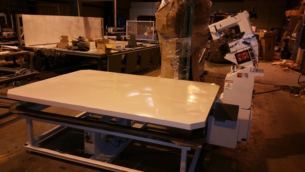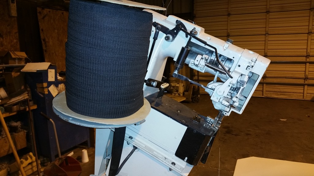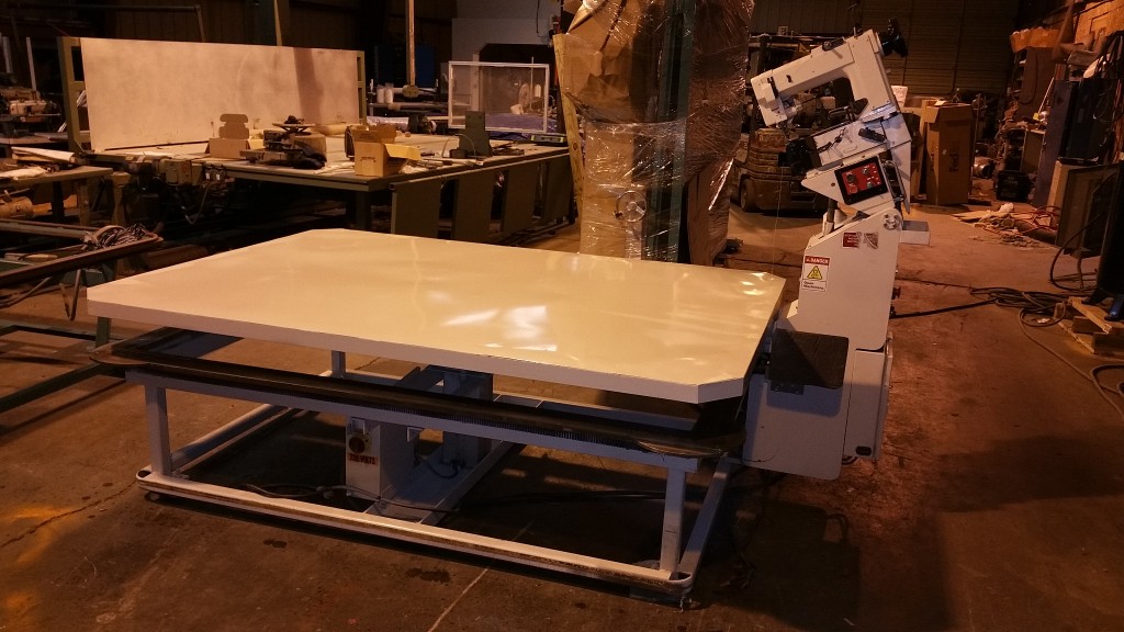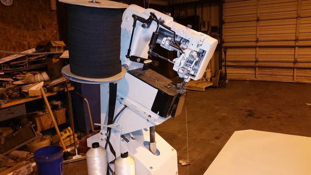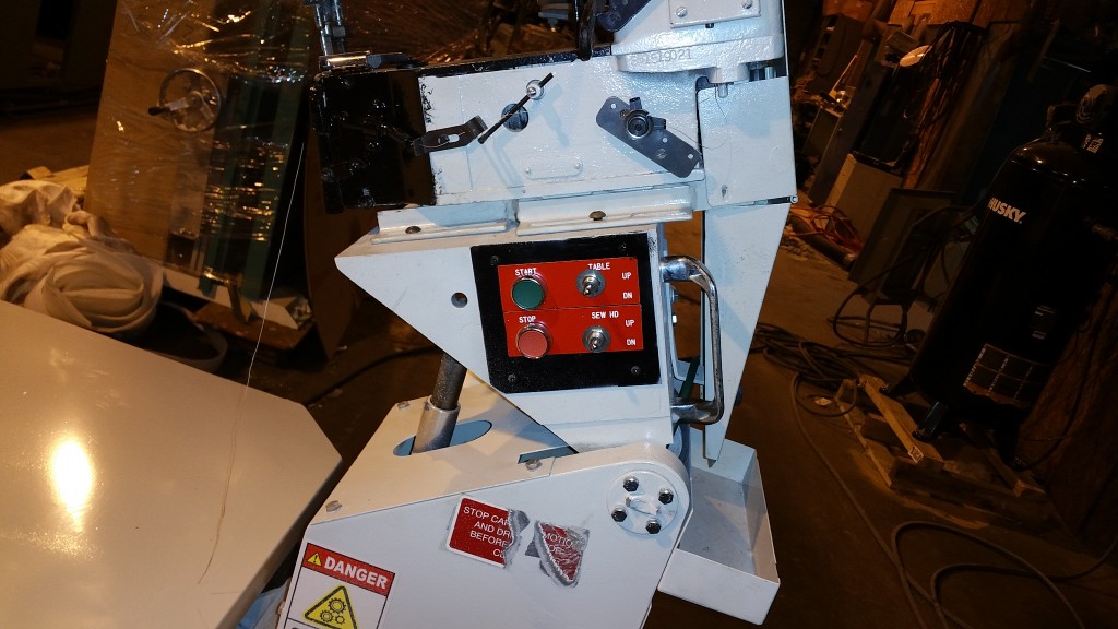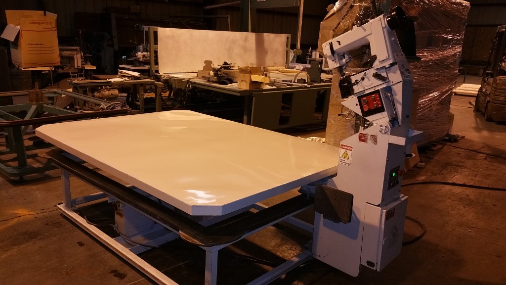 SPUHL ANDERSON TAPE EDGE MACHINE, QUEEN SIZE WITH EXTENSION TO KING, HIGH LIFT 18 INCHES
